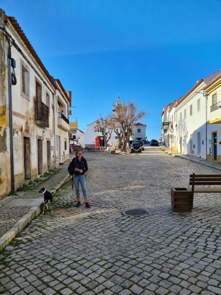 One of the days Srul had to work and Bob wanted to metal detect on the beach so Nicole and I took it upon ourselves to go on a massive trek. The nearest town was Melides about 10 mins drive along the main roads but we thought we could walk there cross country. It was an expedition and a half – climbing over gates and fences (lifting George over) following tracks through forests and then detouring back to the main road to check out each of the restaurants along the way – with only one roadside cafe being open. We finally made it to Melides after what turned out to be 7 miles (I originally thought it was 7km) where we were rewarded by the most delicious meal of fried squid and swordfish and the obligatory chocolate cake only to be confronted with the journey back and decided we would take a different route.