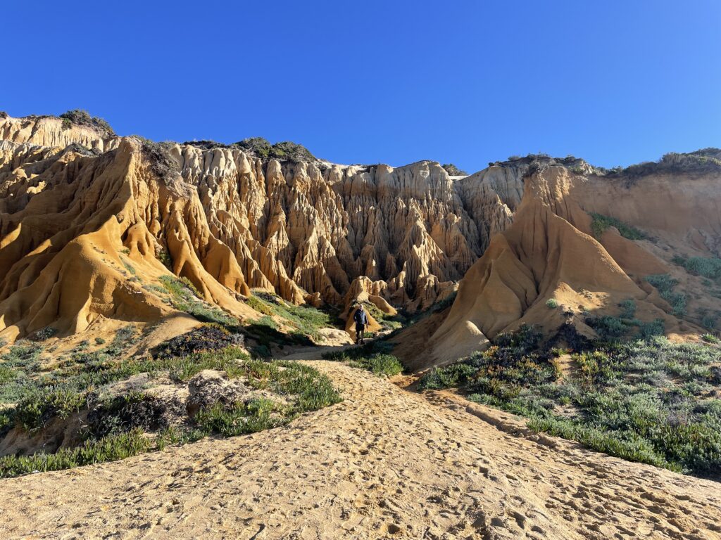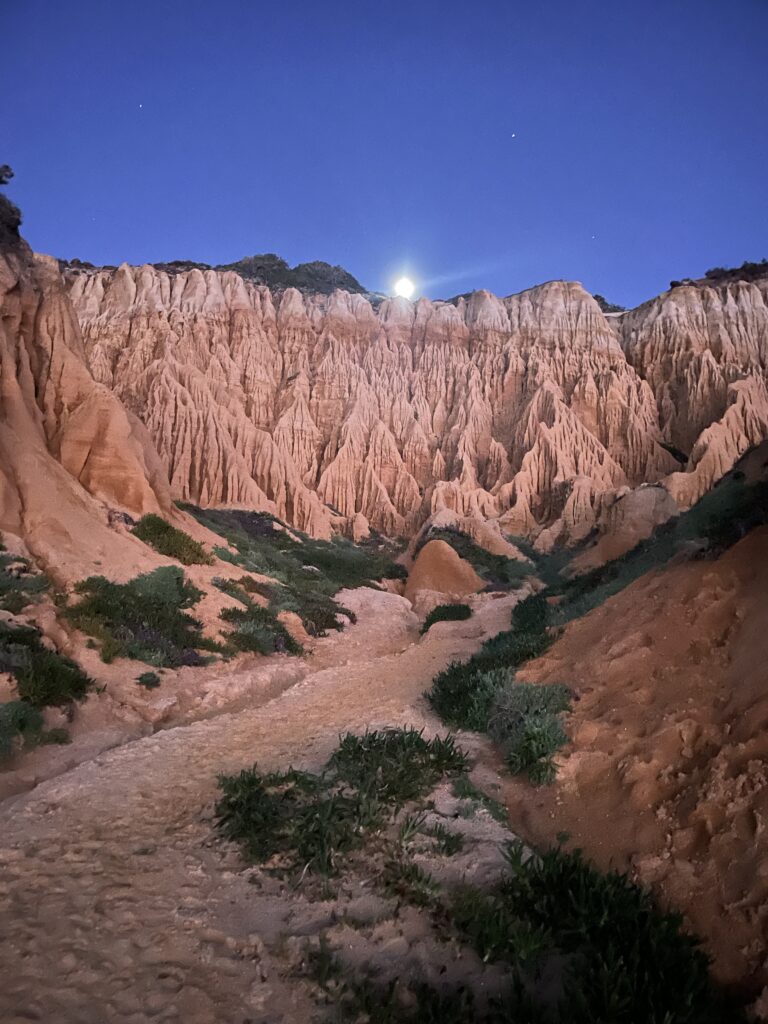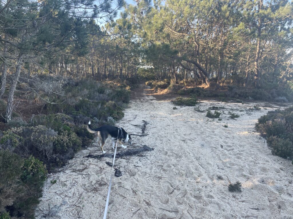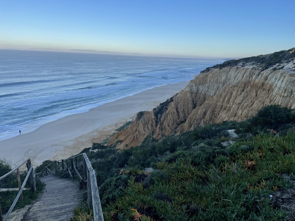 It turned out to be a really nice walk back, less roads more forest tracks and sand but it was 2 miles longer and the last 2 miles were along that beach I mentioned before that meant every step felt like we had lead boots on. We were so tired by now that we were hallucinating a landmark we knew meant we were nearly home, but when we got closer we would realise it wasn’t there…….the sun set and we eventually climbed the steps back up the cliff to our accommodation just as it got dark, absolutely shattered but with a great sense of achievement – 16 miles.