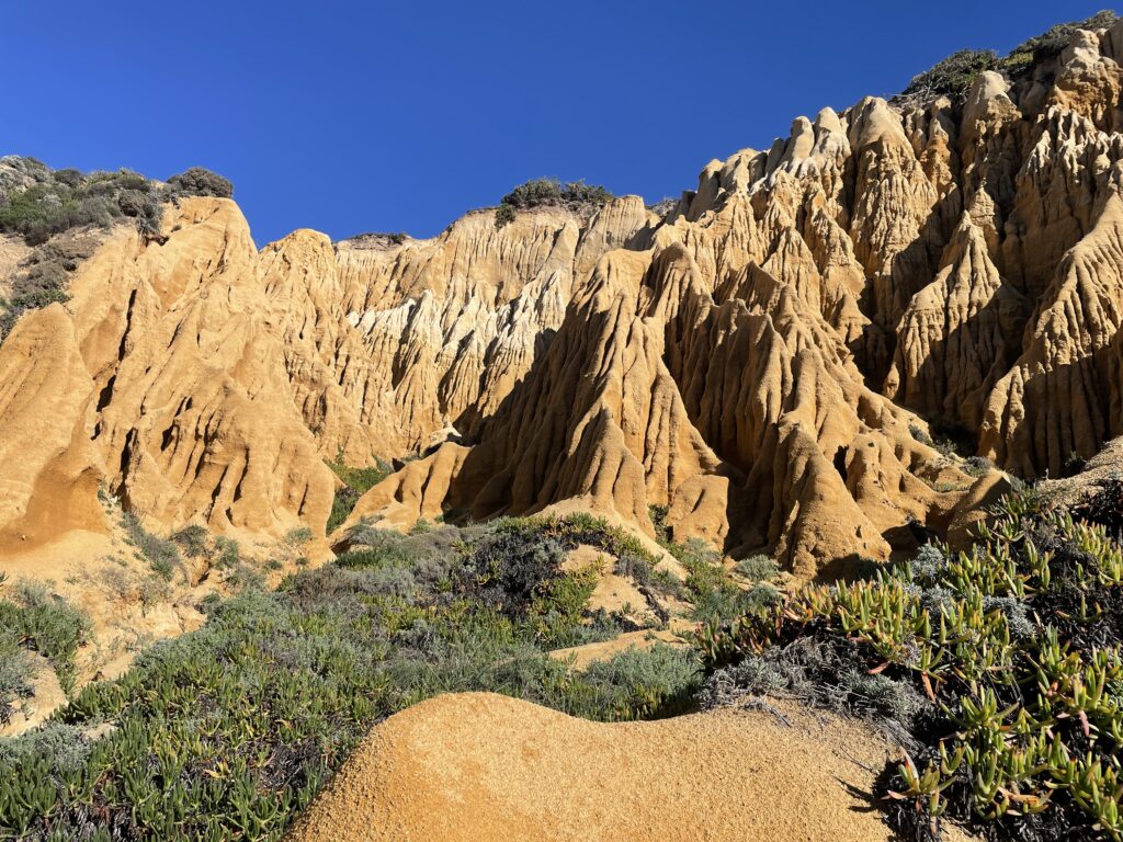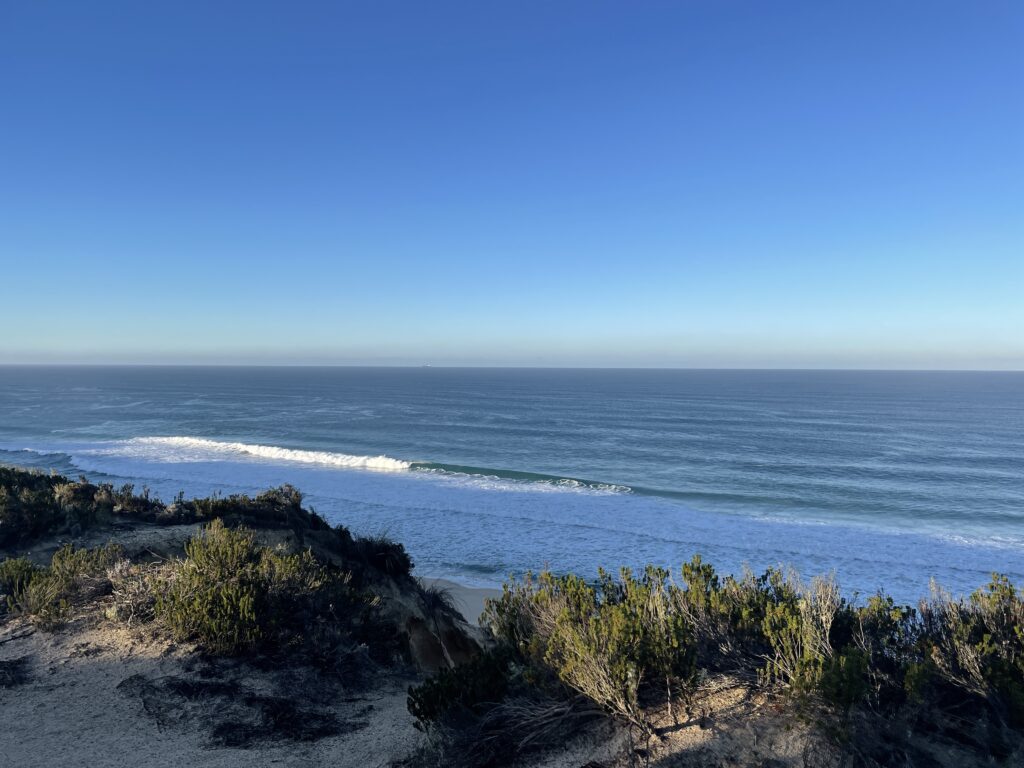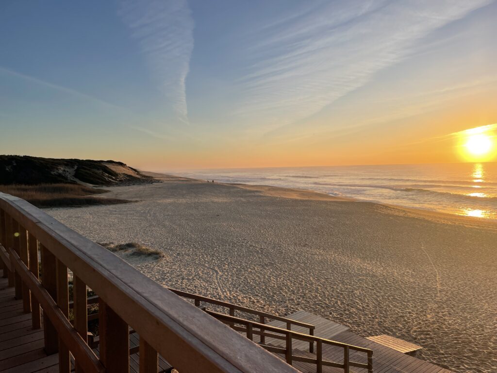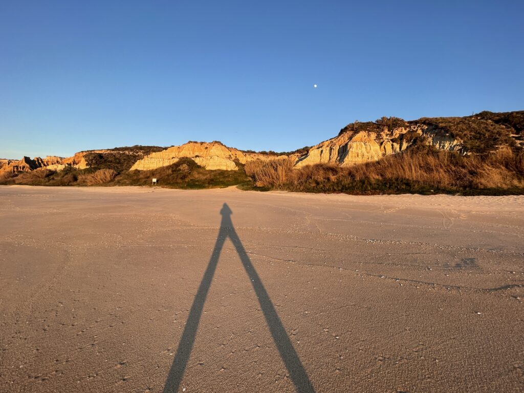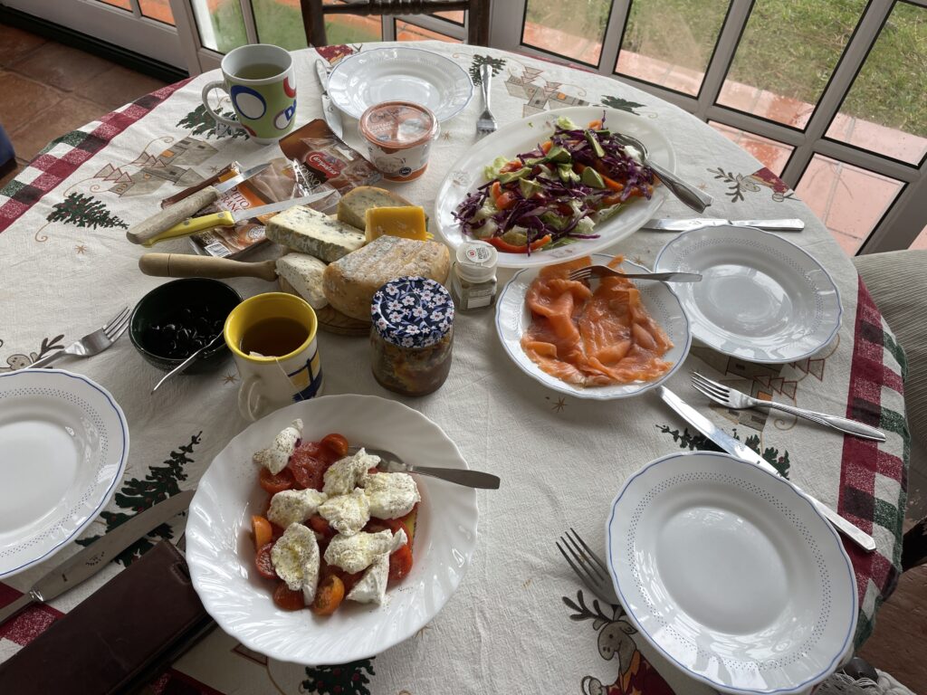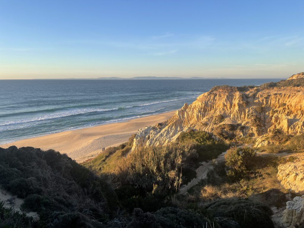 The sunset over the ocean was very special to watch and we visited it each night that we were there when we could although sadly the last 2 nights it was cloudy and rained. We spent a lovely week walking, relaxing and eating. There were local walks along the cliff tops on terrain that was sandy with a mixture of flora and fauna – pine trees, some gorse and little flowers. One thing I noticed was the sound of birdsong in the mornings which seems strange in January but even recently we have heard cuckoos and woodpeckers amongst the morning chorus.