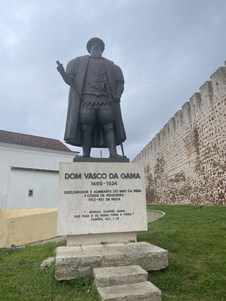 The other town we visited was the surf resort of Sines (pronounced Sin-esh) we were not overly impressed with Sines – it was deserted and very little was open but we did get to walk around the castle walls that gave us a great view of the port and we visited the statue of Vasco de Gama who was the first explorer to sail from Europe to India around the Cape of Good Hope.