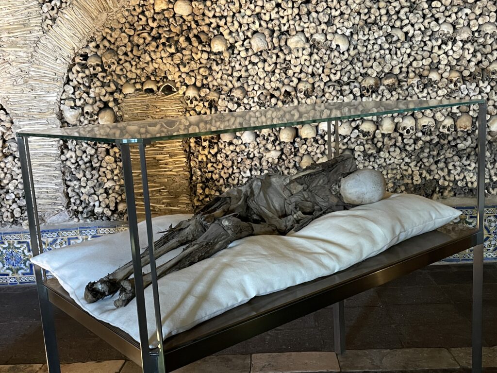 The chapel of skulls was fascinating and deserves a mention – it is the oldest Chapel of Bones in Portugal. The idea is that the bones of the burials connected to the convent were used in its construction. It was believed to be one of the preferred places to be buried by the locals as it would guarantee absolution of sins. The chapel was and is used as a place for prayer and meditation  – you might find consolation according to what is announced on the first day of lent:
