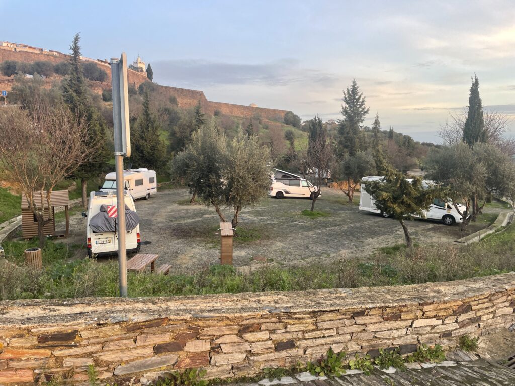 After Evora as we were so close we decided to venture further into rural Portugal and visit the beautiful medieval village perched high up on a hill right on the border with Spain called Montsaraz. The Aire was situated with one of the best views in Portugal and it was less than 50 minutes from us on a road that took us through miles and miles of olive groves.