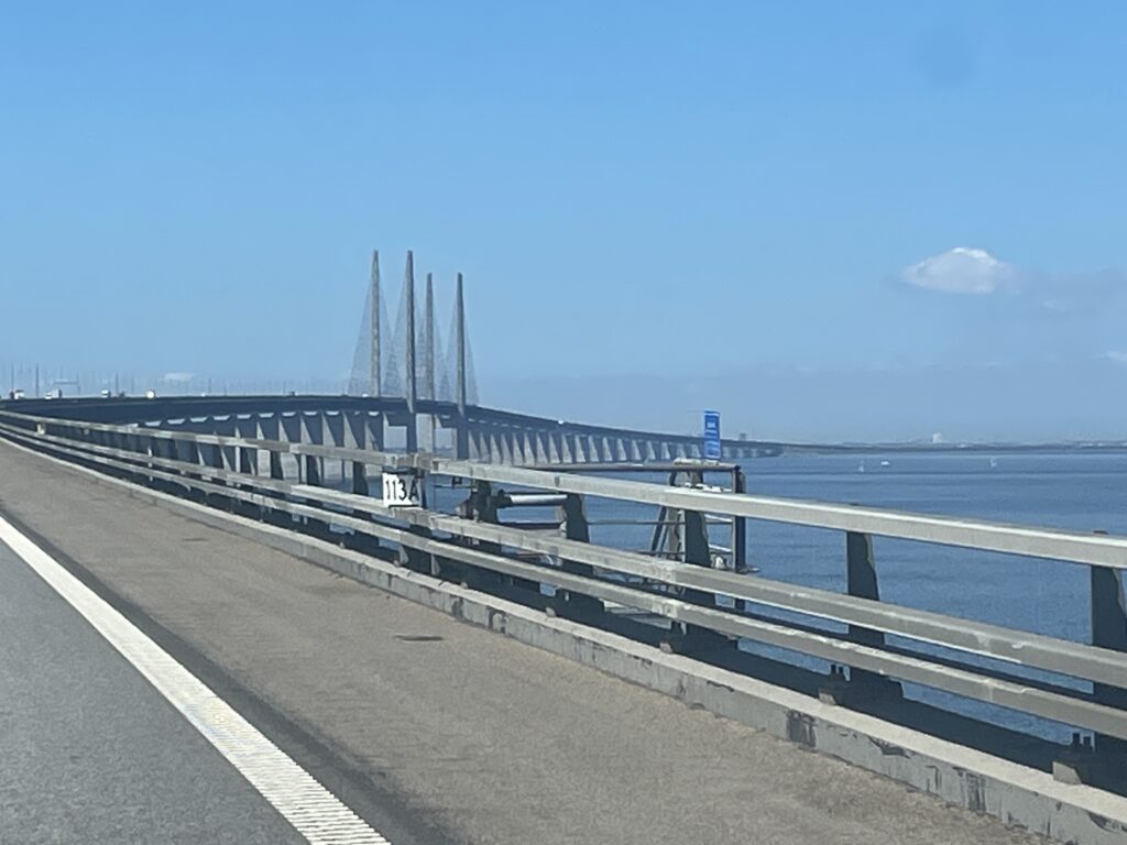 The Oresund Bridge was opened in 2000 and is in fact part bridge and part tunnel. The Danish end is close to Copenhagen airport so they could not construct a bridge that impacted the runway or make it too low so that ships couldn’t sail under it. Therefore, they created a manmade island in the middle from the rock from the tunnel. The bridge between Sweden and Denmark was a turning point in connecting continental Europe and the Nordics and now around 70,000 crossings are made daily. It wasn’t cheap to cross – over £100 for our motorhome!