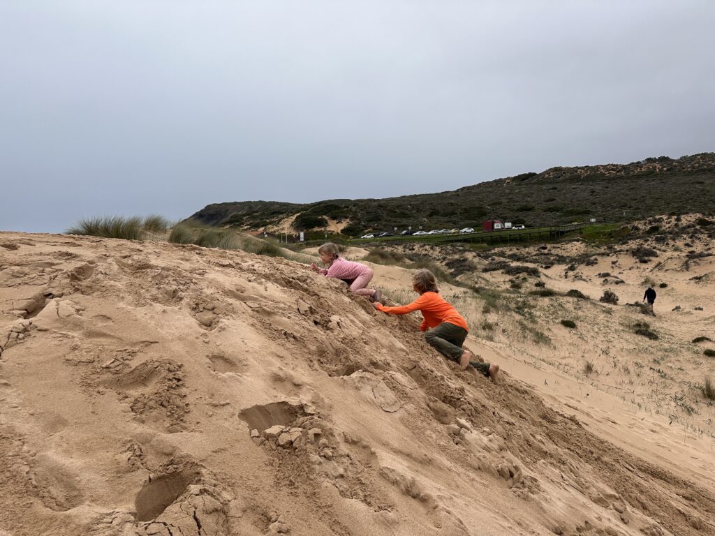 We were now an hour from Rio and Hamish and they spent the weekend with us – exploring two of the beaches, Monte Clerigo and Arrifana with its sand dunes that reminded us of Balmedie in Aberdeen.