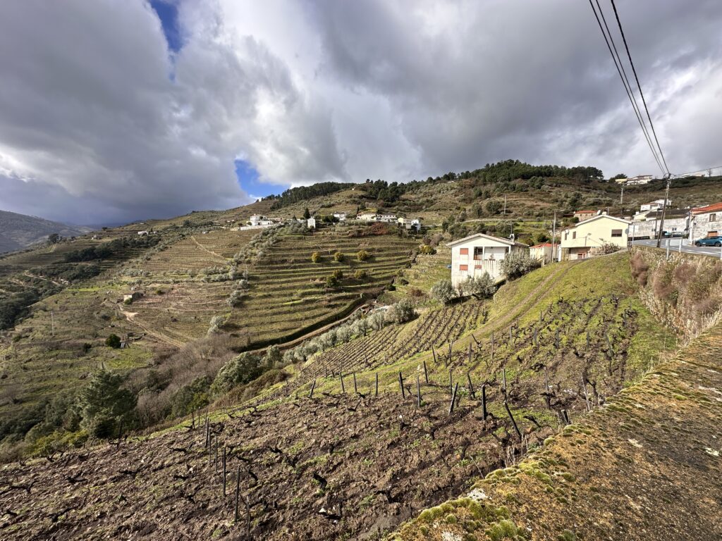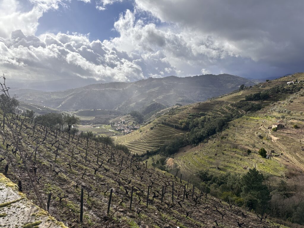 Our drive south took us over the border at Tui/Valenca over the river Minho and we headed inland to drive along part of the N2 – one of Portugal’s most scenic roads -this section wound through part of the Douro wine region. It was a great drive winding down into the valley surrounded by terrace after terrace of vines – all bare at this time of year but looking so well-tended, neat black stems poking out of the lush fertile soil set amongst a beautiful mountain back drop.