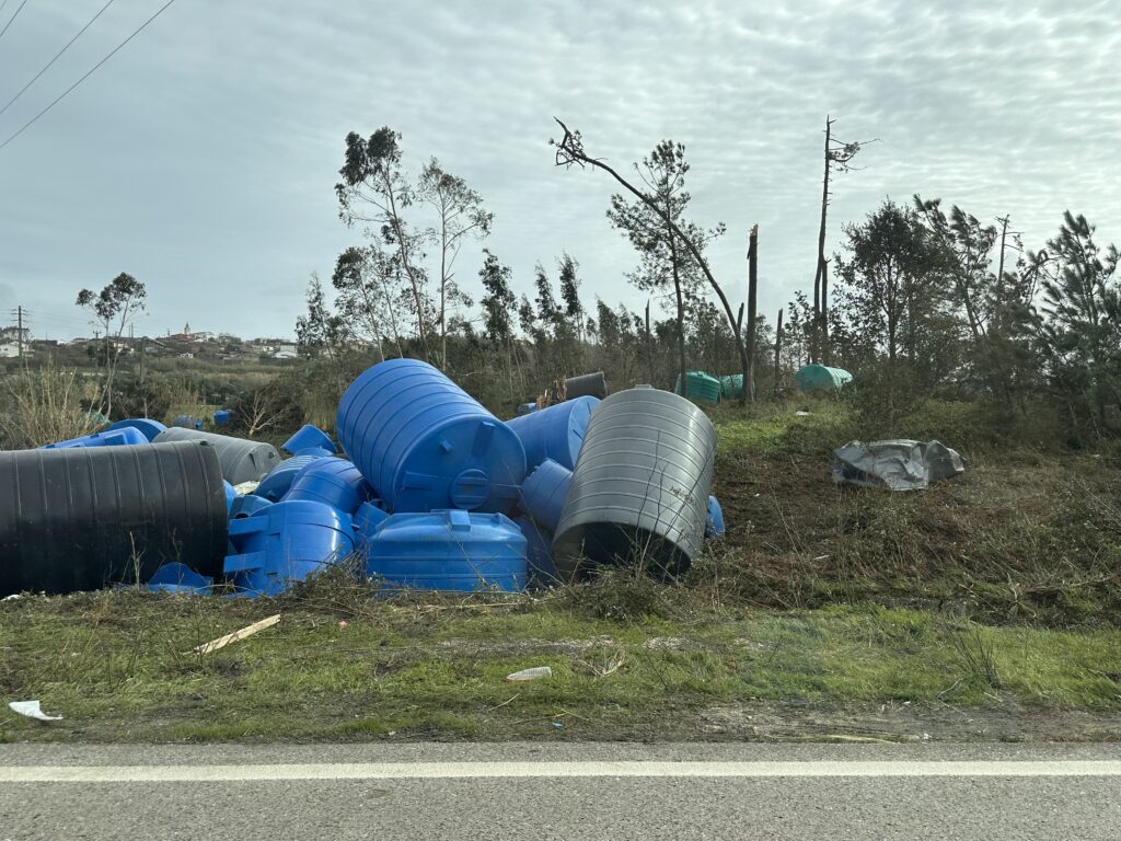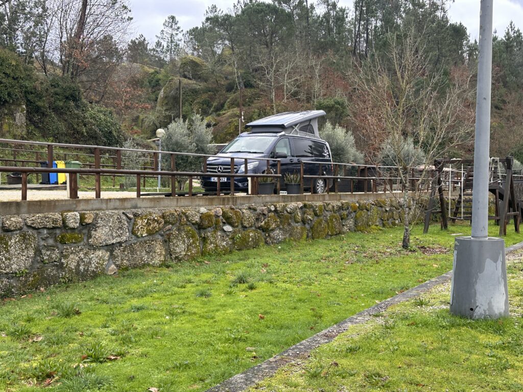 We decided to stop by a small Aire in a sheltered village called Farminho – off the beaten track and isolated. This turned out to be a wise decision as that night we were right in the middle of Storm Kristen that hit Mid to north Portugal and parts of Spain. Strangely we had a calm night despite receiving a government warning on our mobiles of the impending fierce winds and the horror of what was going on in the area.