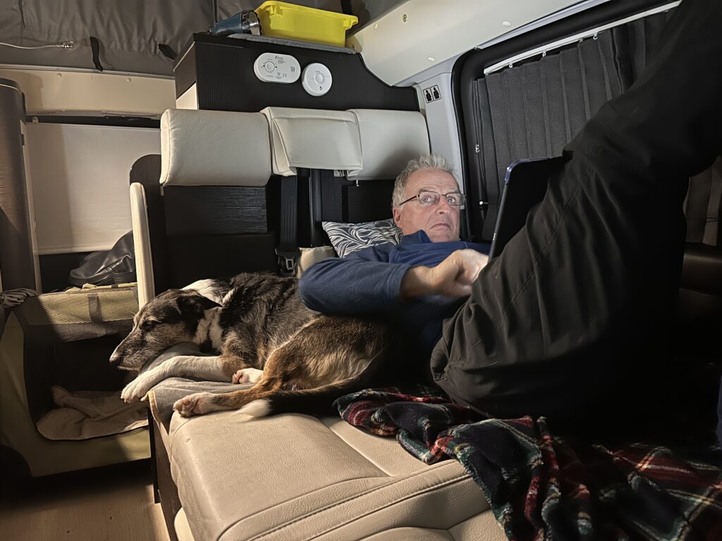 The last day that we were in Spain it rained the entire day and we only managed to get outside to top up our groceries before we left and a short walk for George. The rain was relentless and the wind was still strong, so much so that the place we stayed at had water running down the inside walls.